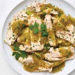Placer le poulet dans le Plat de 1 ¾ pte/1,75 L, puis l'assaisonner de sel et de poivre. Remuer les morceaux assaisonnés dans la farine pour les enrober. Ajouter la salsa verte et mélanger pour enrober. Superposer les plats et cuire.
