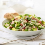 Dans un grand bol, remuer ensemble la romaine, le chou frisé, la roquette, l’avocat, la tomate, l’oignon, les œufs, les artichauts, les haricots verts, le bacon et le poulet. Servir la vinaigrette sur le côté.